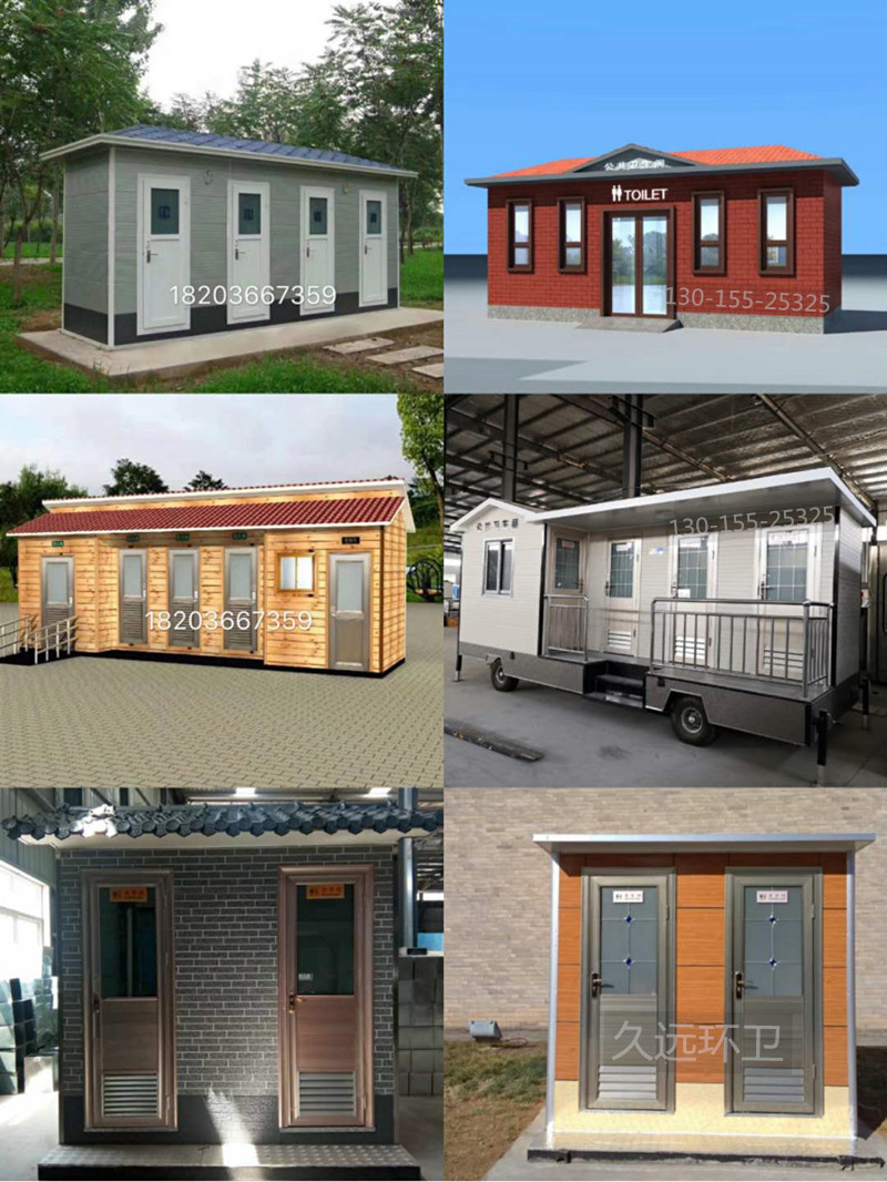 久遠環衛移動衛生間廠家直銷,可根據用戶需求定制各種顏色、尺寸、造型、款式、多蹲位等移動廁所130-155-25325